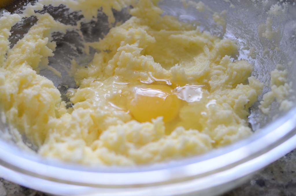 - Add eggs one at a time, mixing after each